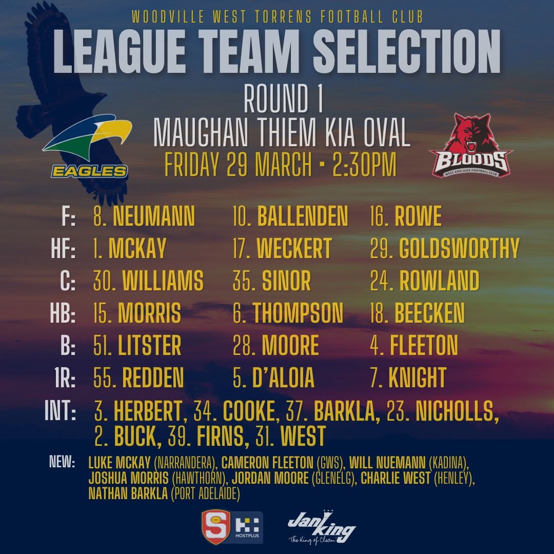 New: Luke McKay (Narrandera), Cameron Fleeton (GWS), Will Neumann (Kadina), Joshua Morris (Hawthorn), Jordan Moore (Glenelg), Charlie West (Henley), Nathan Barkla (Port Adelaide)