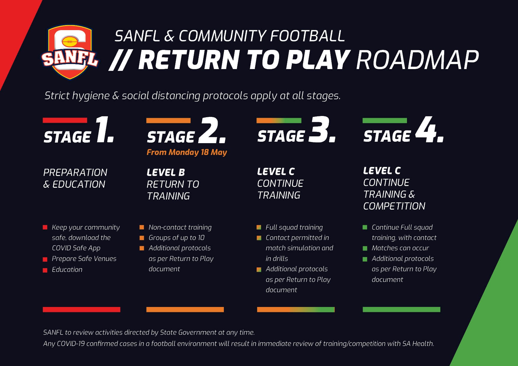 Footy training will be back for our eight SANFL Clubs, as well as many community clubs, from Monday, May 18, but not as we know it.