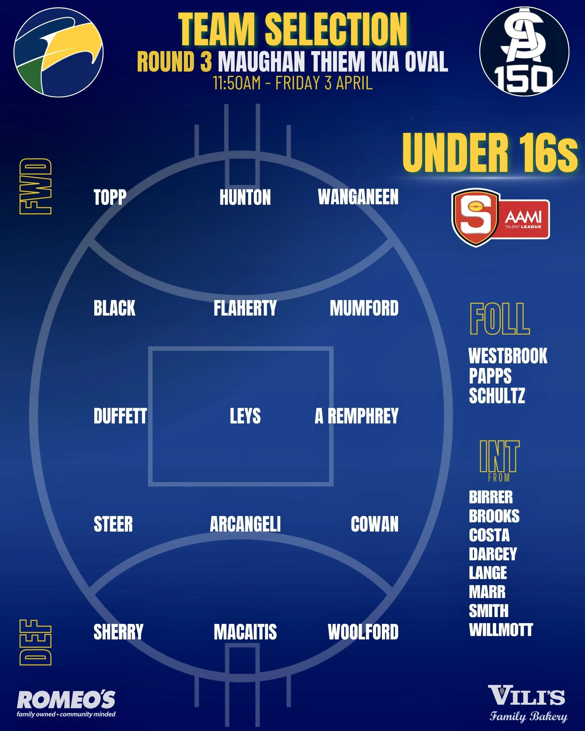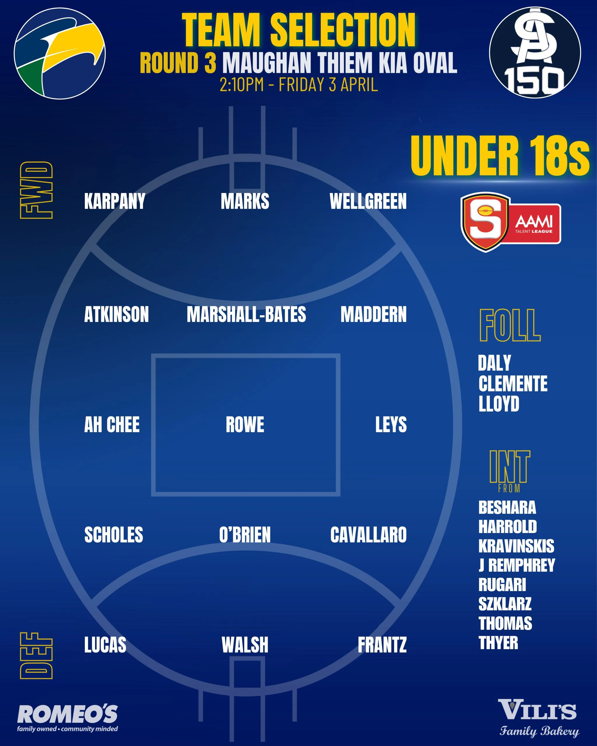 Romeo’s U18 Team Selections – Round 1