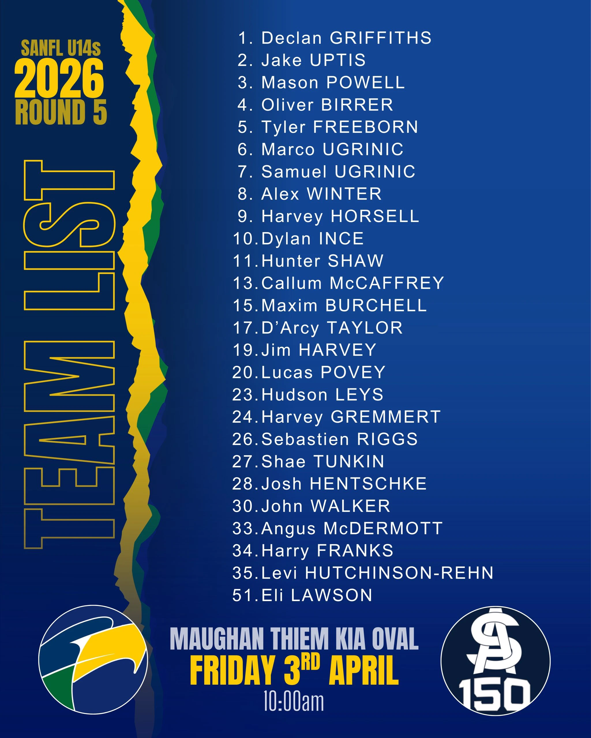 U14s Squad Selection - Round 5