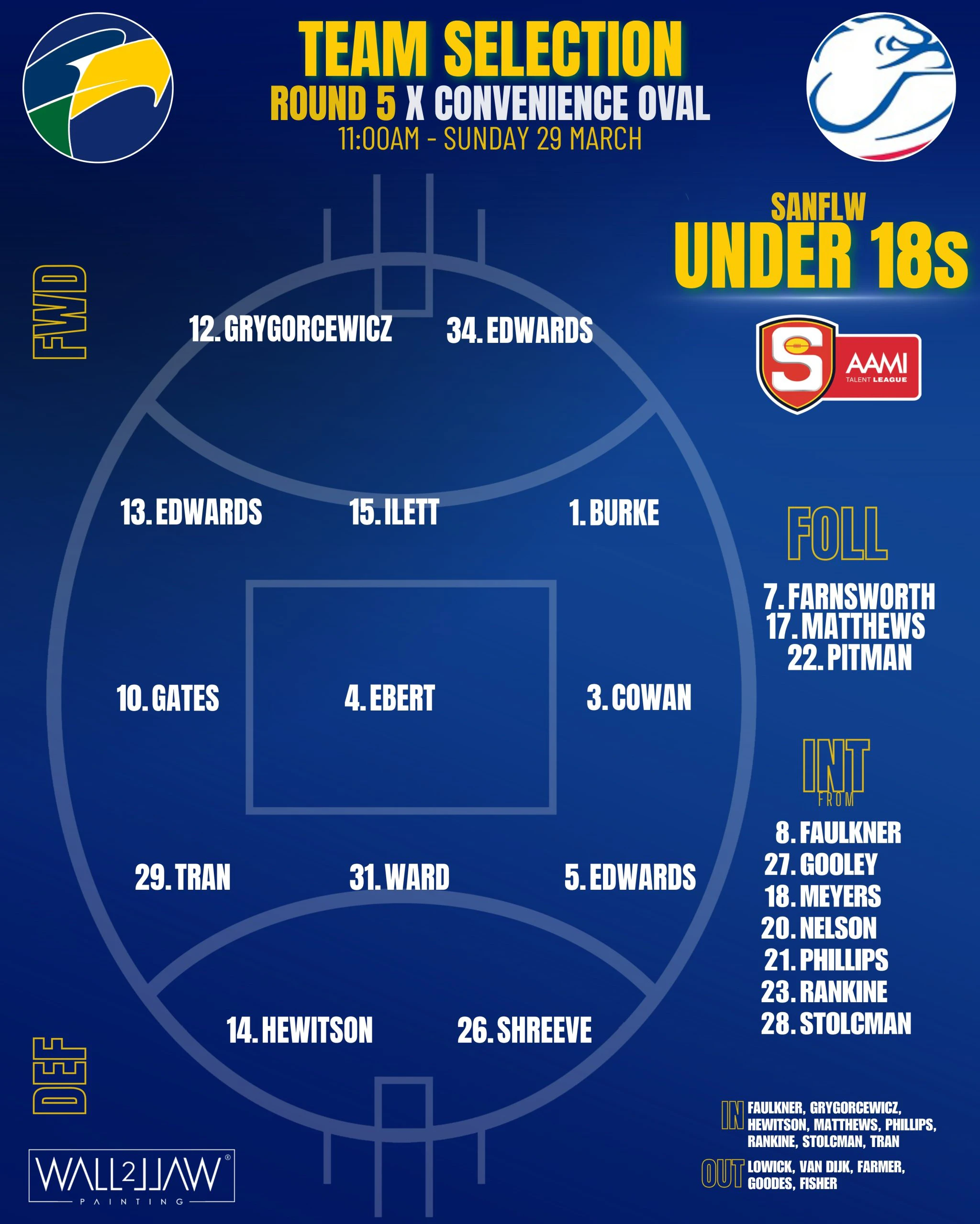 SANFLW Under 18 Team Selection, Round 5 + SANFLW League Trial Squad