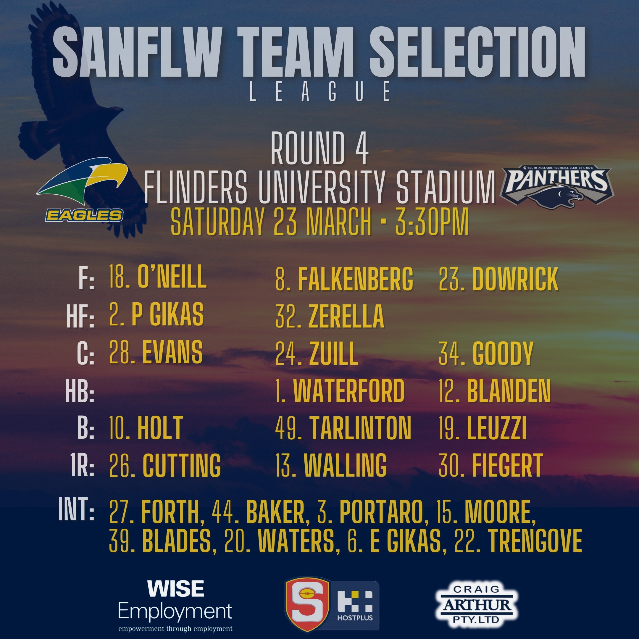 Out: Taylah Levy (unavailable) / Grace Martin (Concussion) / Brooklyn Kraft (Injured)